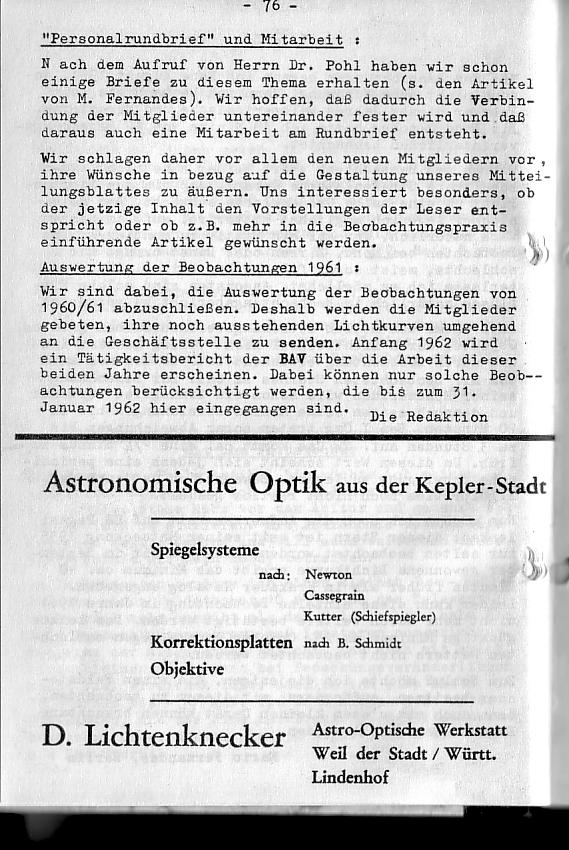 BAV Rundbrief 4/1961 Seite 76