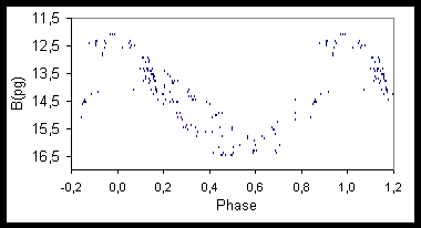 Die Form der Lichtkurve ist veränderlich. Für den Zeitraum JD 37000 - 40000 ergibt sich ein flacher Abstieg und ein steiler Anstieg, M - m = 0,P3. Für den Zeitraum JD 44000 - 49500 sind Abstieg und Anstieg gleich, M - m = 0,P5.