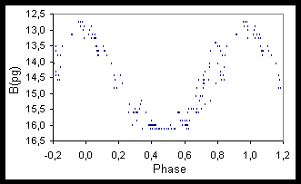 Im GCVS wird nur eine Periodenlänge von 187 Tagen angegeben, mit der Bemerkung, dass eine Periode von 374 Tagen möglich sei. Diese Angaben stammen von Binnendijk,L (1). Für die Untersuchungen standen mir 169 Aufnahmen zur Verfügung. Meine Beobachtungen ergeben eine Periodenlänge von 185,63 Tagen. Damit ist die Lichtkurve gleichmäßig besetzt, aber die Epochezahlen sind alle geradzahlig. Bei einer Verdopplung der Periode werden die Epochezahlen halbiert und ergeben damit auch ungerade Werte. In der Lichtkurve sind aber einige Bereiche nicht mit Beobachtungen besetzt. Aus meinen Beobachtungen kann ich nicht entscheiden, welche Periode die richtige ist, deshalb sind hier beide Perioden angegeben. Weitere Beobachtungen sind hier erforderlich.